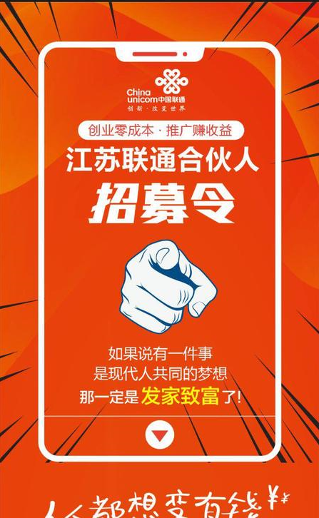 张家港联通合伙人招募令,大家都可以加入,无需营业厅,无需加盟费。