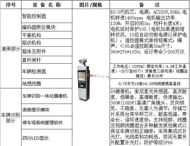 备注:道闸无法联网,系统采用脱机运行,每次数据更新需要每台机器单独更新,系统采用车牌自动识别开闸,和刷卡开闸同时工作。