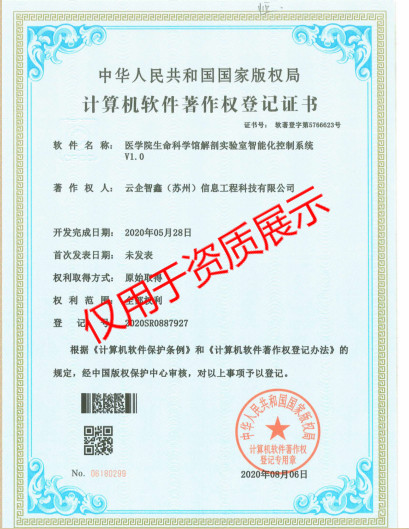 1):医学院生命科学馆解剖实验室智能化控制系统V1.0:证书登记号2020SR0887927;