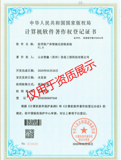 2 ):医学院尸库智能化控制系统V1.0:证书登记号2020SR0887948;