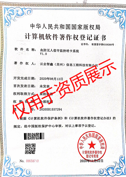 4):血防无人值守监控哨卡系统V1.0:证书号2020SR1537294;