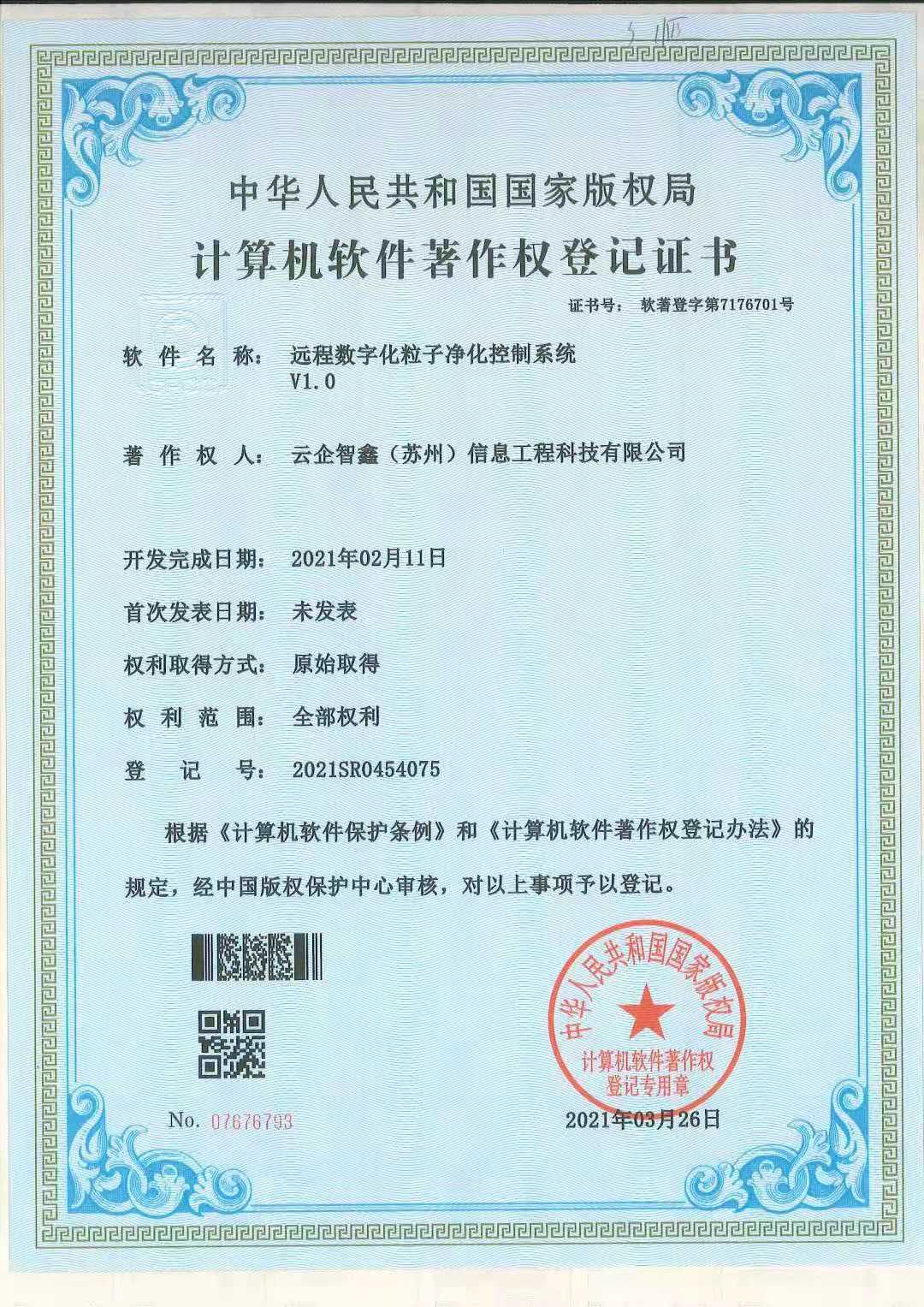 6):远程数字化粒子净化控制系统V1.0:证书号2021R11L1247275;
